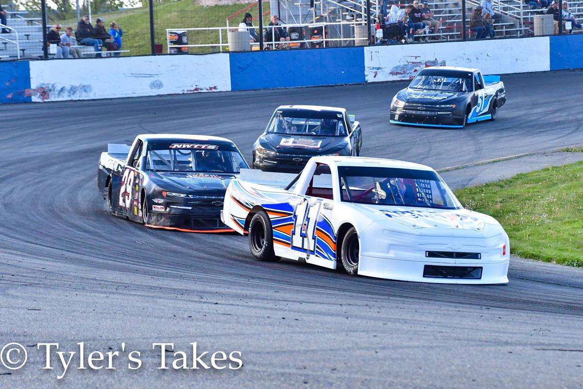 Race two saw Jesse James Lawson rocket around Harris to lead lap one. But in Lawson’s mirrors lurked Wade. The veteran NASCAR Truck racer bided his time and watched Lawson struggle to get his Antlers Boutique, S Porters, Inc. pickup to run the inside line. After a handful of laps Wade struck in turns three and four to take the lead.